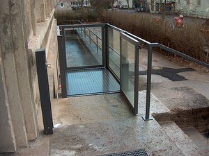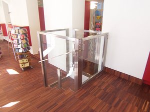 Die Hebebühne kann in einem bestehenden Schacht mit mindesten einer tragenden Wand installiert werden, aber auch freistehende selbsttragende Versionen mit Ganzglas, Stahl- Glas, oder Aluminium – Glas Umhausungen sind realisierbar.